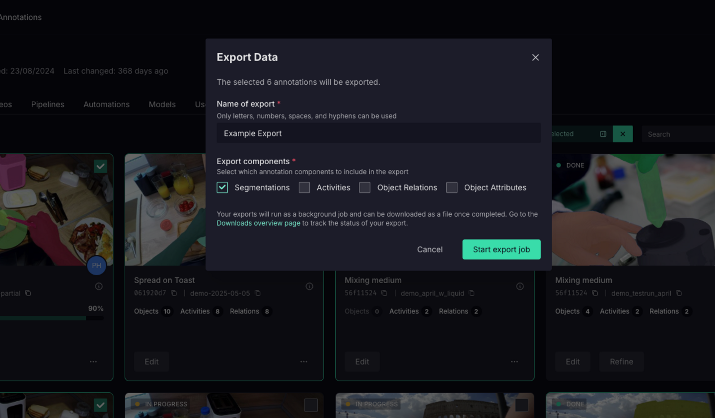 Choose which elements you want to have exported about your annotation: